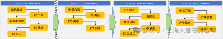 (5) KD全流程信息流透明化。從訂單下發(fā)、包裝發(fā)運(yùn)、在途追蹤到到貨接收,整個(gè)信息流需要實(shí)時(shí)、透明,以便雙方都能清晰掌握狀態(tài),應(yīng)對(duì)突發(fā)情況。