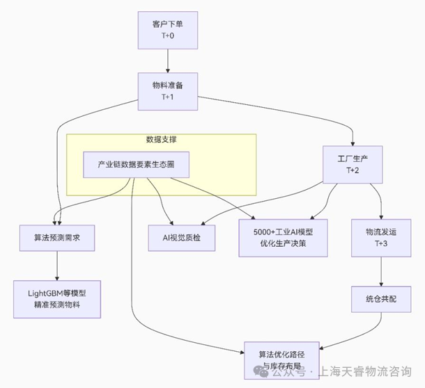 N集團(tuán)的實踐表明,現(xiàn)代制造業(yè)的競爭,核心是供應(yīng)鏈協(xié)同效率和數(shù)據(jù)算法應(yīng)用能力的競爭。其T+3模式不僅僅是四個環(huán)節(jié)的簡單拼接,更是在算法、數(shù)據(jù)、流程和組織深度融合下形成的、難以模仿的系統(tǒng)性競爭力。圖為該集團(tuán)應(yīng)用算法賦能T+3制造供應(yīng)鏈的邏輯圖。