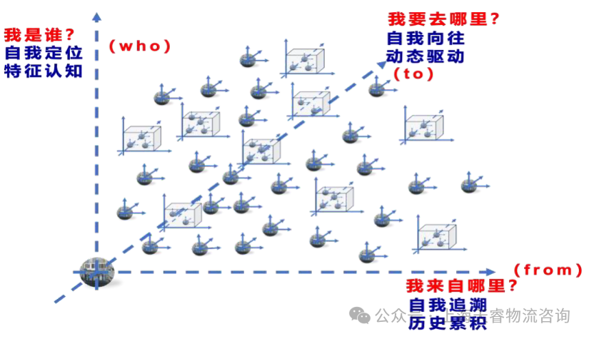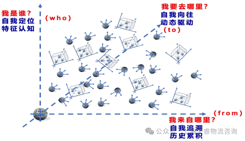 類似的邏輯在制造物流領(lǐng)域也具有重要啟示:物料同樣需要“知道”自身的身份(Who)、來源(From)、去向(To),以明確其在工廠和供應(yīng)鏈物流系統(tǒng)中的坐標(biāo)與運(yùn)行軌跡。若物料缺乏這種“方向感”,就容易陷入被動(dòng)與混亂狀態(tài),導(dǎo)致資源錯(cuò)配和浪費(fèi),甚至引發(fā)系統(tǒng)崩潰。上述三問為物料規(guī)劃和調(diào)度提供了最樸素且務(wù)實(shí)的哲學(xué)起點(diǎn),也是VOM思想的根源。